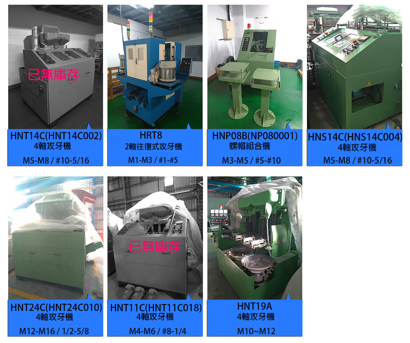 目前有一些中古攻牙机正在特价, 如有适合贵司的攻牙机, 请跟我们询价。
